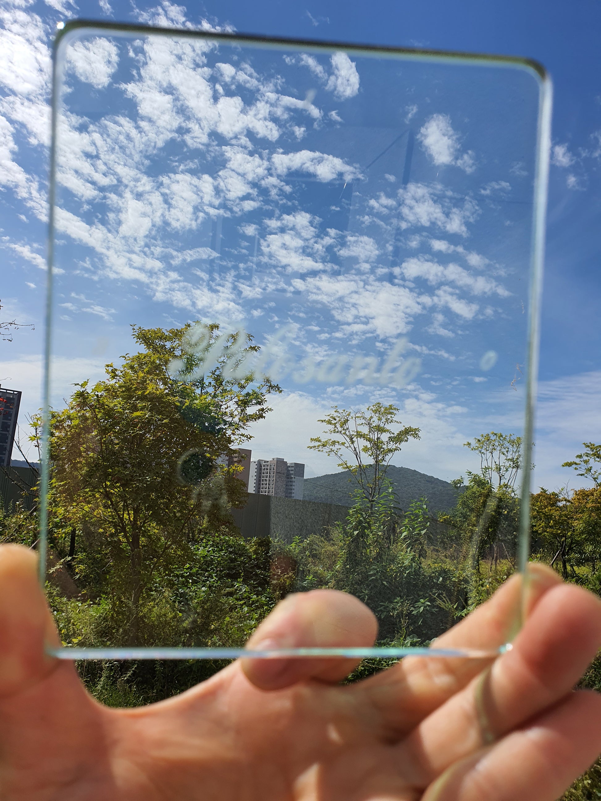 It is made of tempered glass and measures 15cm x 12cm x 8T.